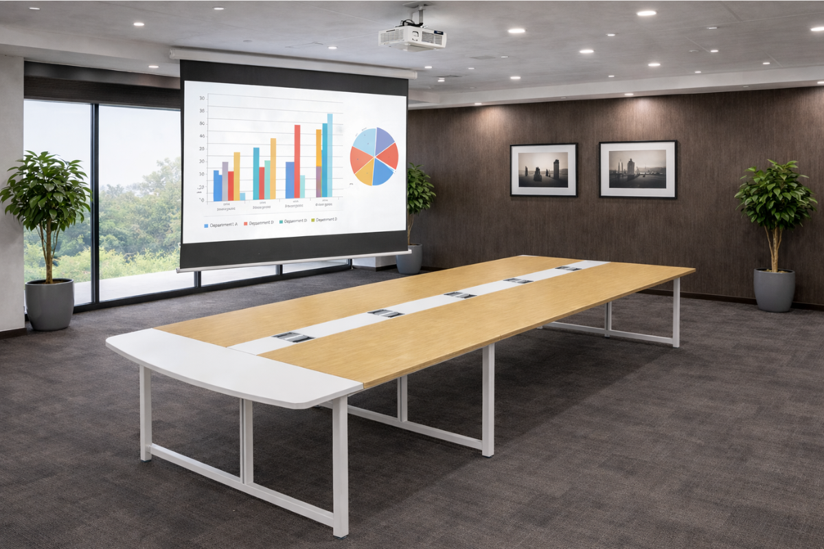 Untuk ruang rapat yang rapi dan profesional. Bisa tambah cable box & custom finishing.