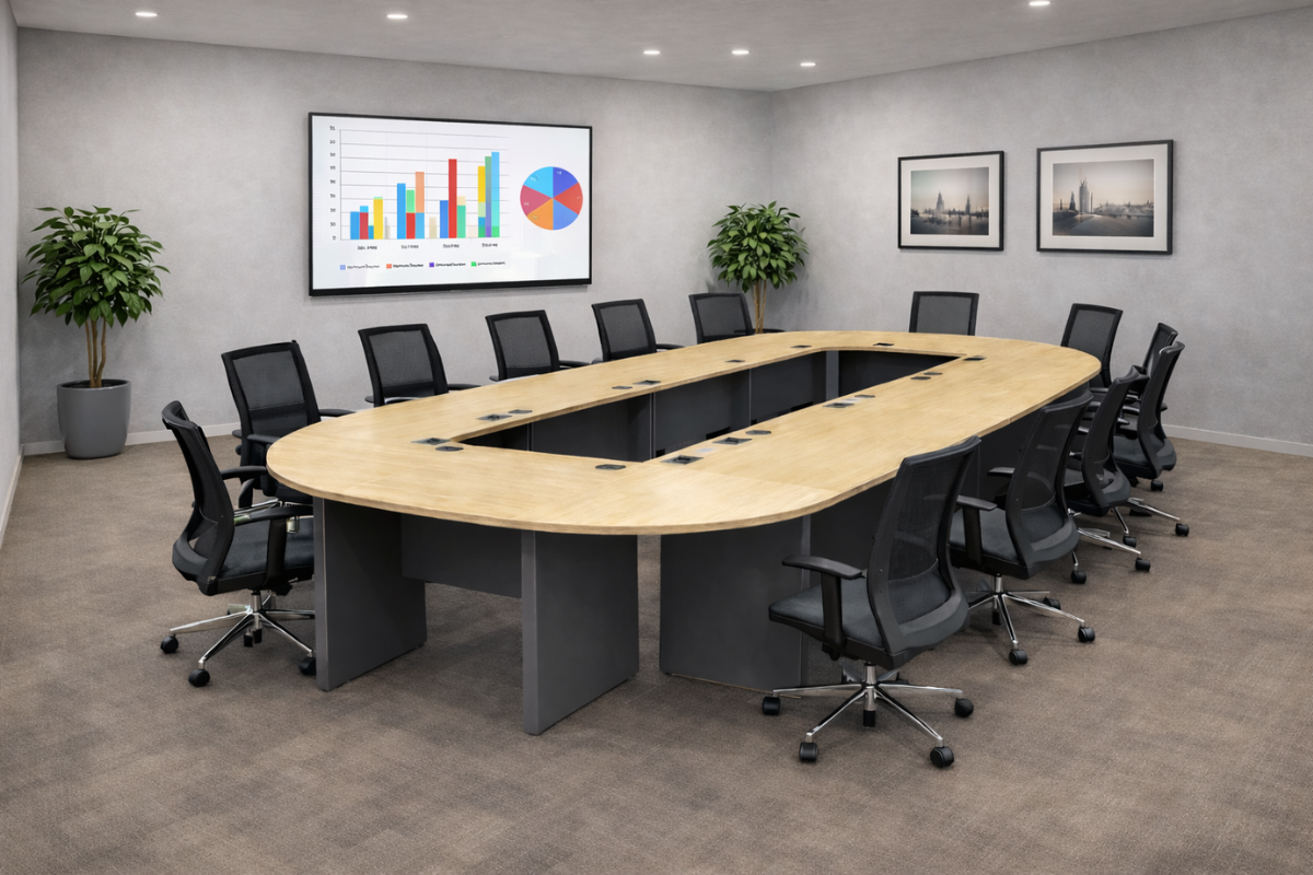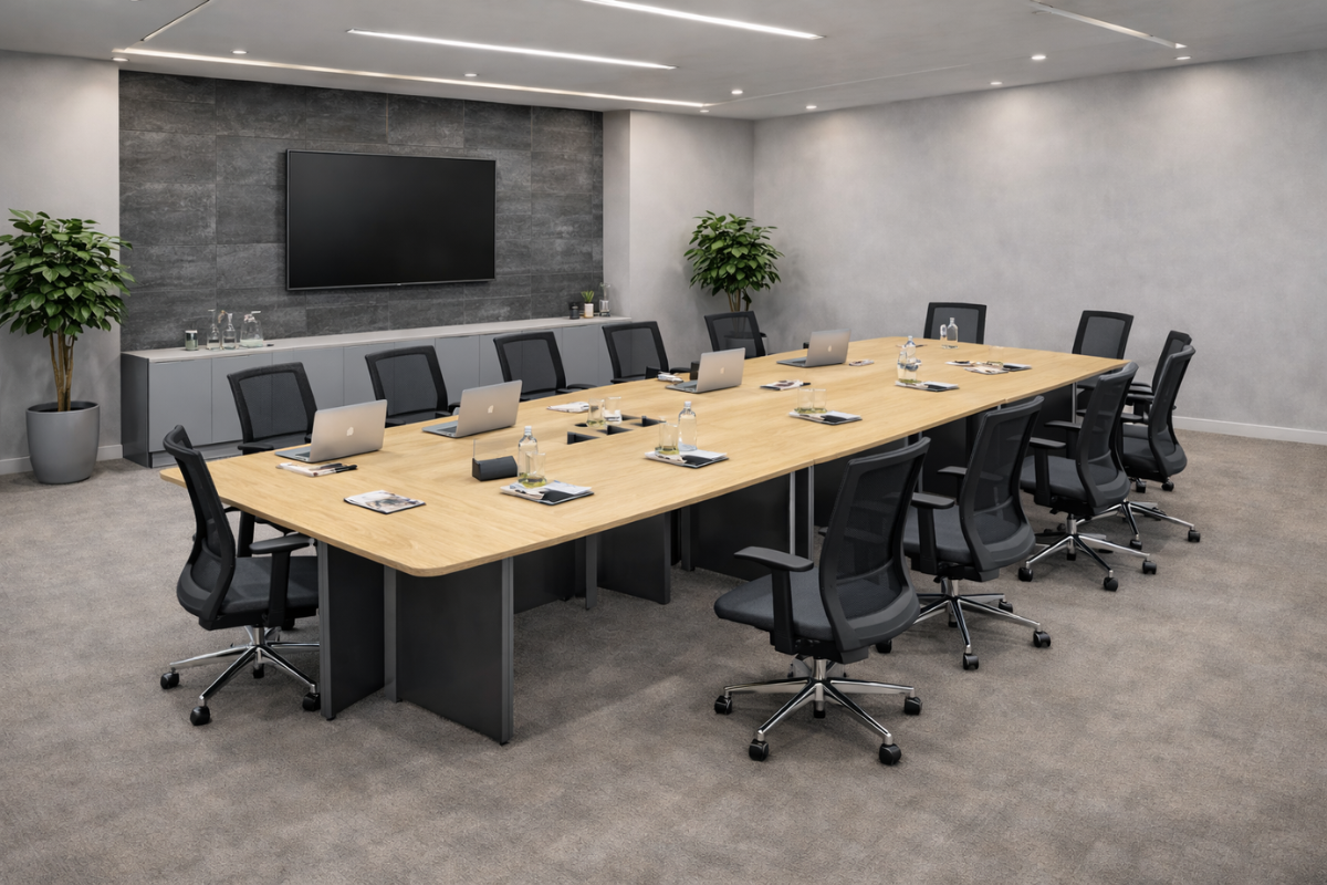 Set ruang rapat dan executive dengan tampilan premium. Bisa custom ukuran, material, dan finishing.